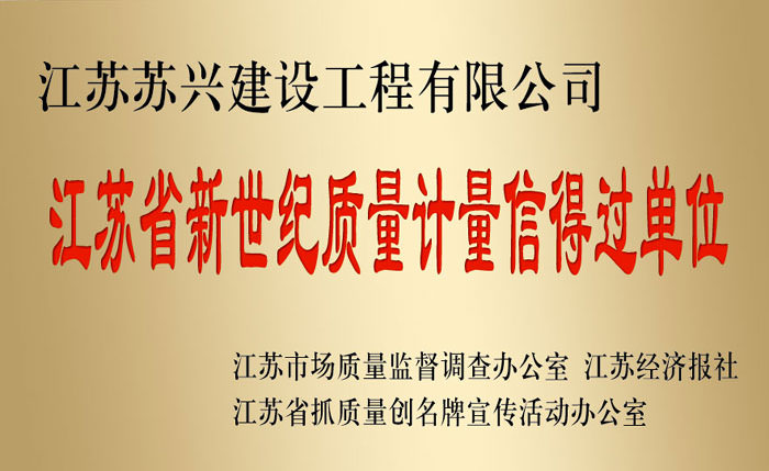 江蘇省新世紀(jì)質(zhì)量計(jì)量信得過單位