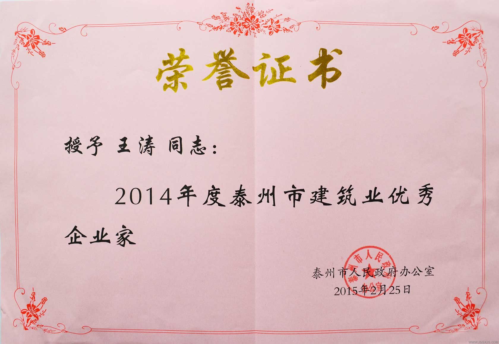 2014年度泰州市建筑業(yè)優(yōu)秀企業(yè)家