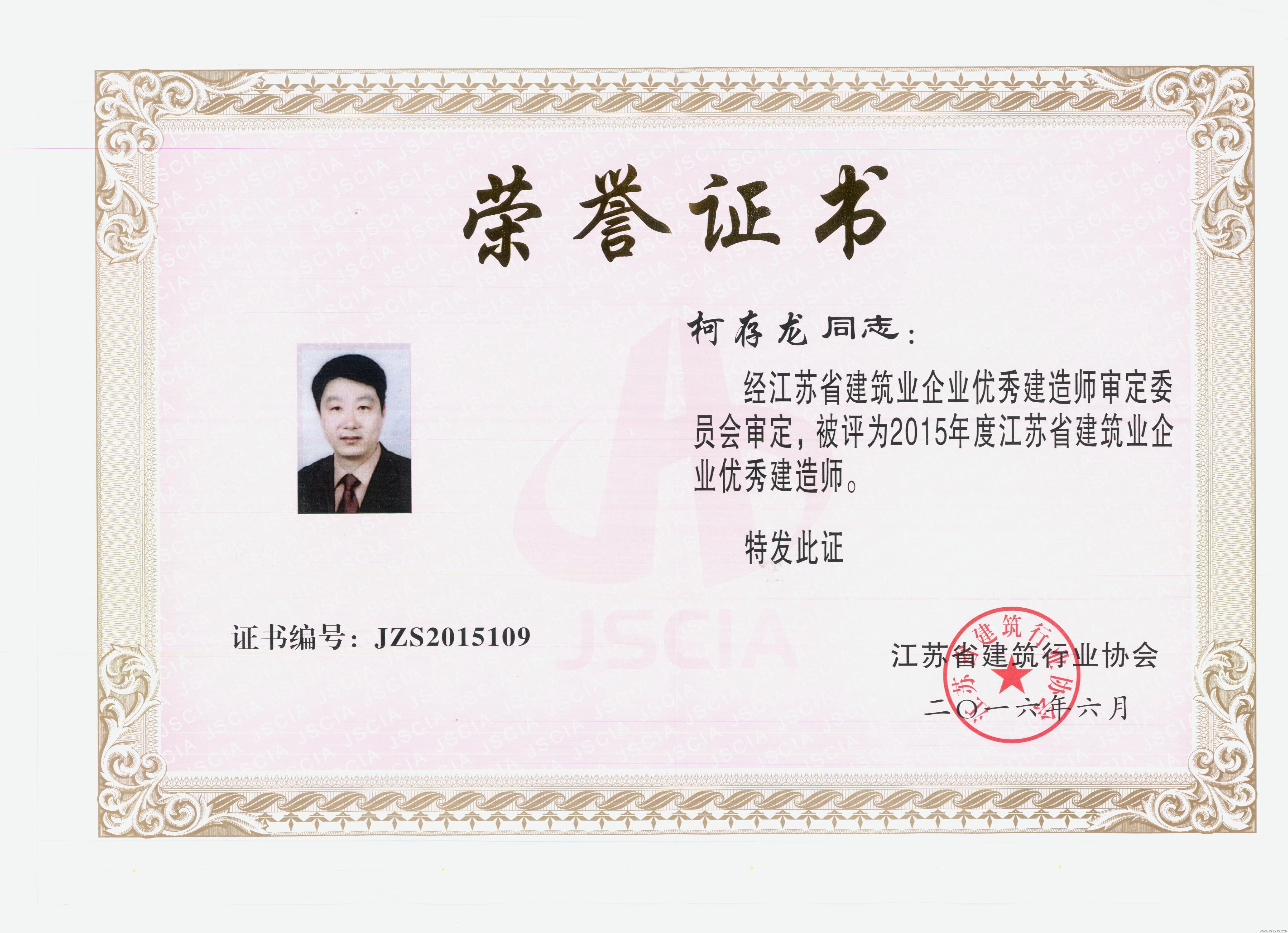 2015年度江蘇省建筑企業(yè)優(yōu)秀建造師